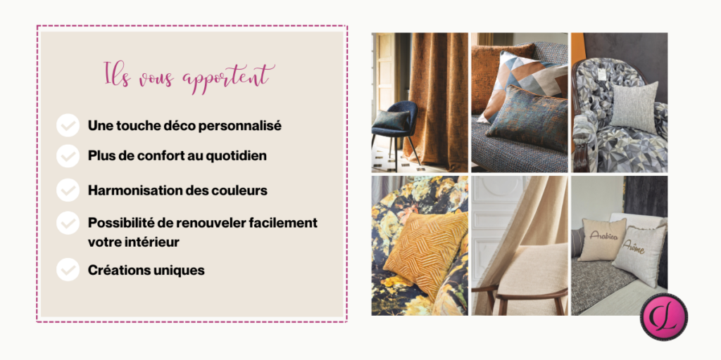 Ils permettent de personnaliser un canapé, un fauteuil ou un lit, et d’harmoniser la décoration d’une pièce.